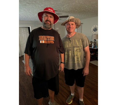 Dave with his brother in law Eric wearing their bucket hats. "Bucket Hat Brothers"