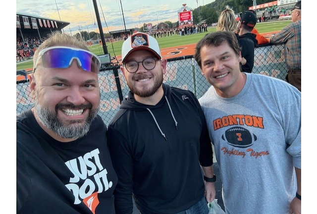 Dave bumps into Battle Champ legends from Ironton TJ Young and The Todd-Father Todd Eaches at the Ironton v Fairland football game Friday night.