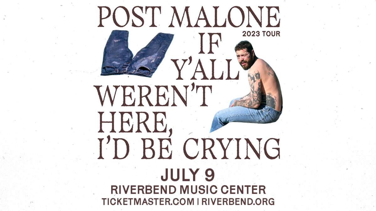 Post Malone: If Y'all Weren't Here, I'd Be Crying Sun • Jul 09 • 8:00 PM Riverbend Music Center, Cincinnati, OH Get your tickets here: https://www.ticketmaster.com/event/16005EA98E8316C2