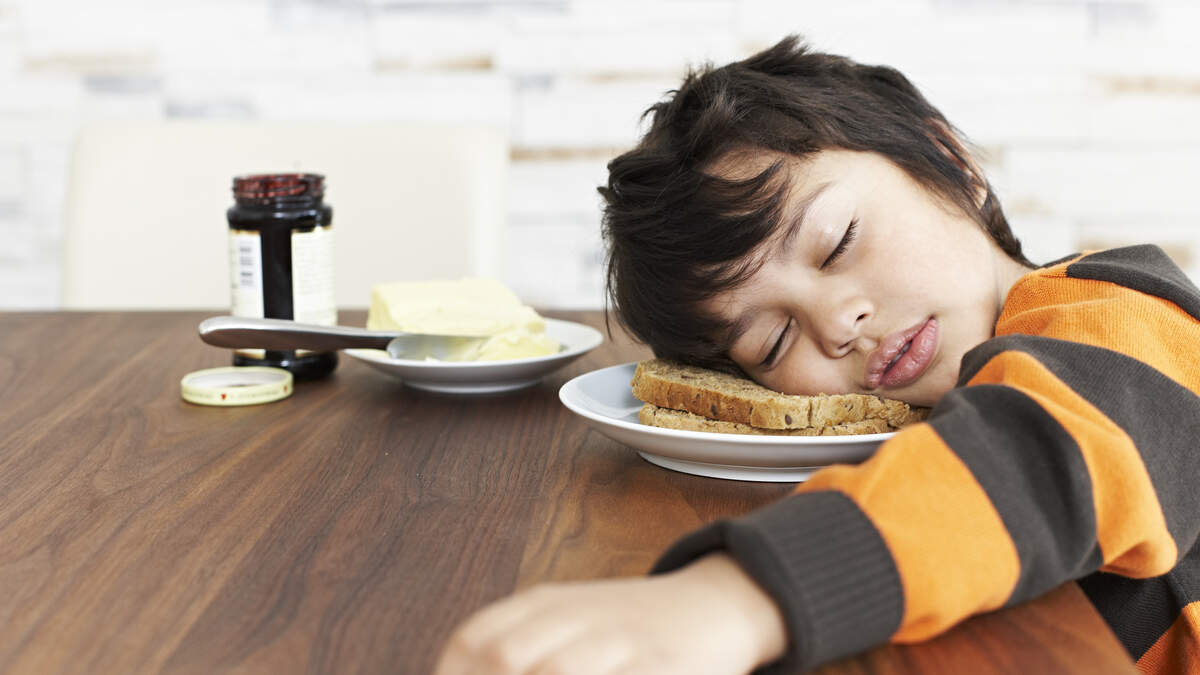 This toddler struggles to stay awake while nibbling on a Cheeto and falls asleep with it hanging from his mouth.