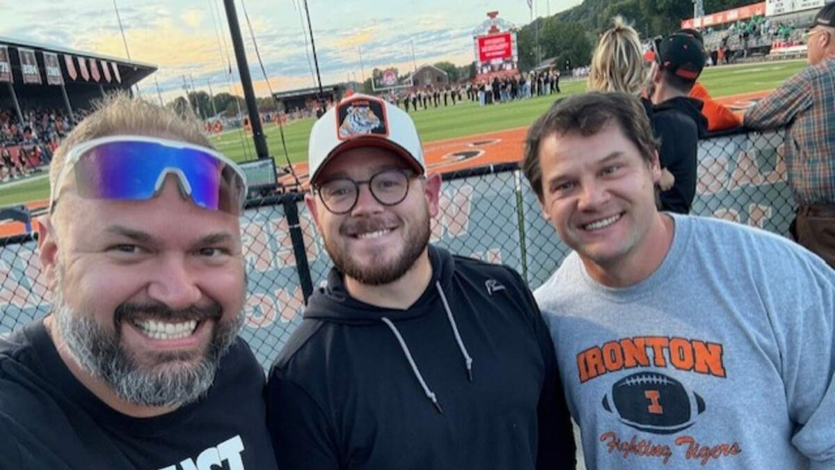 Dave bumps into Battle Champ legends from Ironton TJ Young and The Todd-Father Todd Eaches at the Ironton v Fairland football game Friday night.